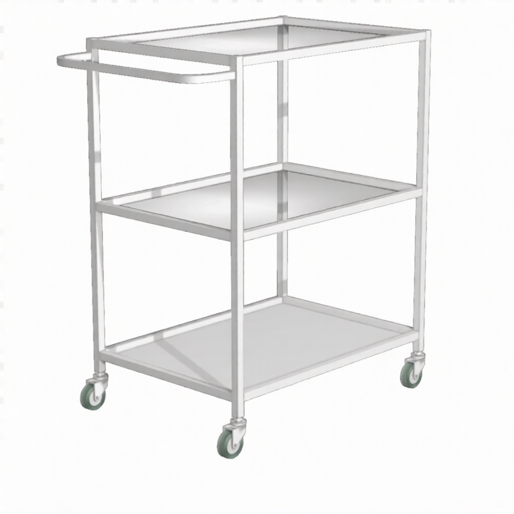 Стол инструментальный (колеса резина) Ти-2 (каркас белый) — это трехъярусный мобильный стол с комбинированными полками, применяемый для размещения инструмента, материалов и медикаментов, в том числе в стоматологической практике, в кабинетах врачей, перевязочных, операционных, на постах медицинских сестер в отделениях больниц, клиниках, поликлиниках и других медицинских учреждениях. Модель имеет две верхние стеклянные полки и одну нижнюю металлическую полку.