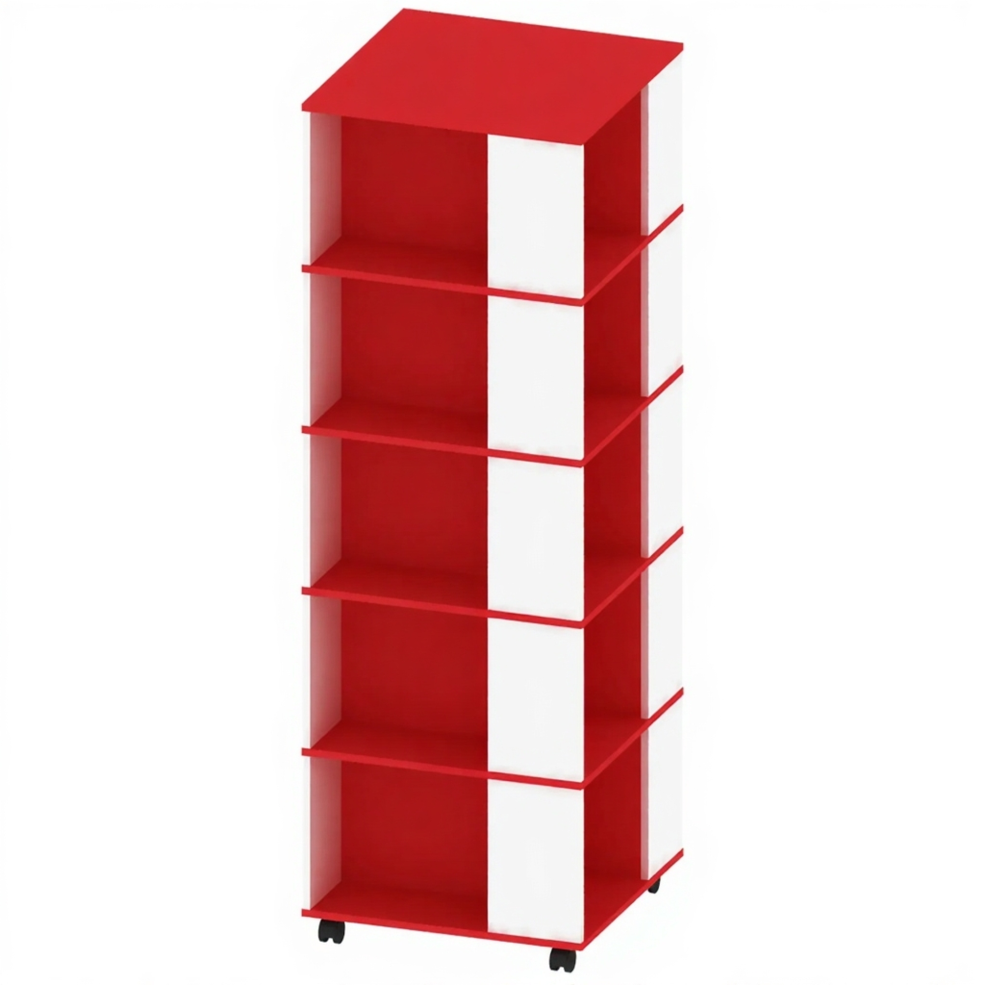 - Повышенная мобильность и маневренность — оснащен прочными колесами, позволяя легко транспортировать даже полностью загруженный стеллаж для перепланировки пространства или выездных мероприятий.