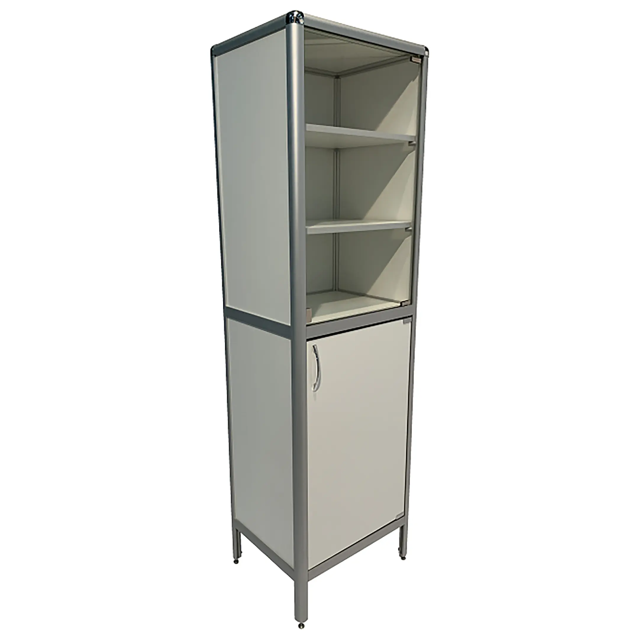 - Соответствие стандартам медицинских учреждений — шкаф разработан с учетом специфических требований к оснащению процедурных, лабораторий и аптечных пунктов. Белый цвет корпуса не только соответствует канонам медицинской эстетики, но и облегчает визуальный контроль чистоты поверхностей.