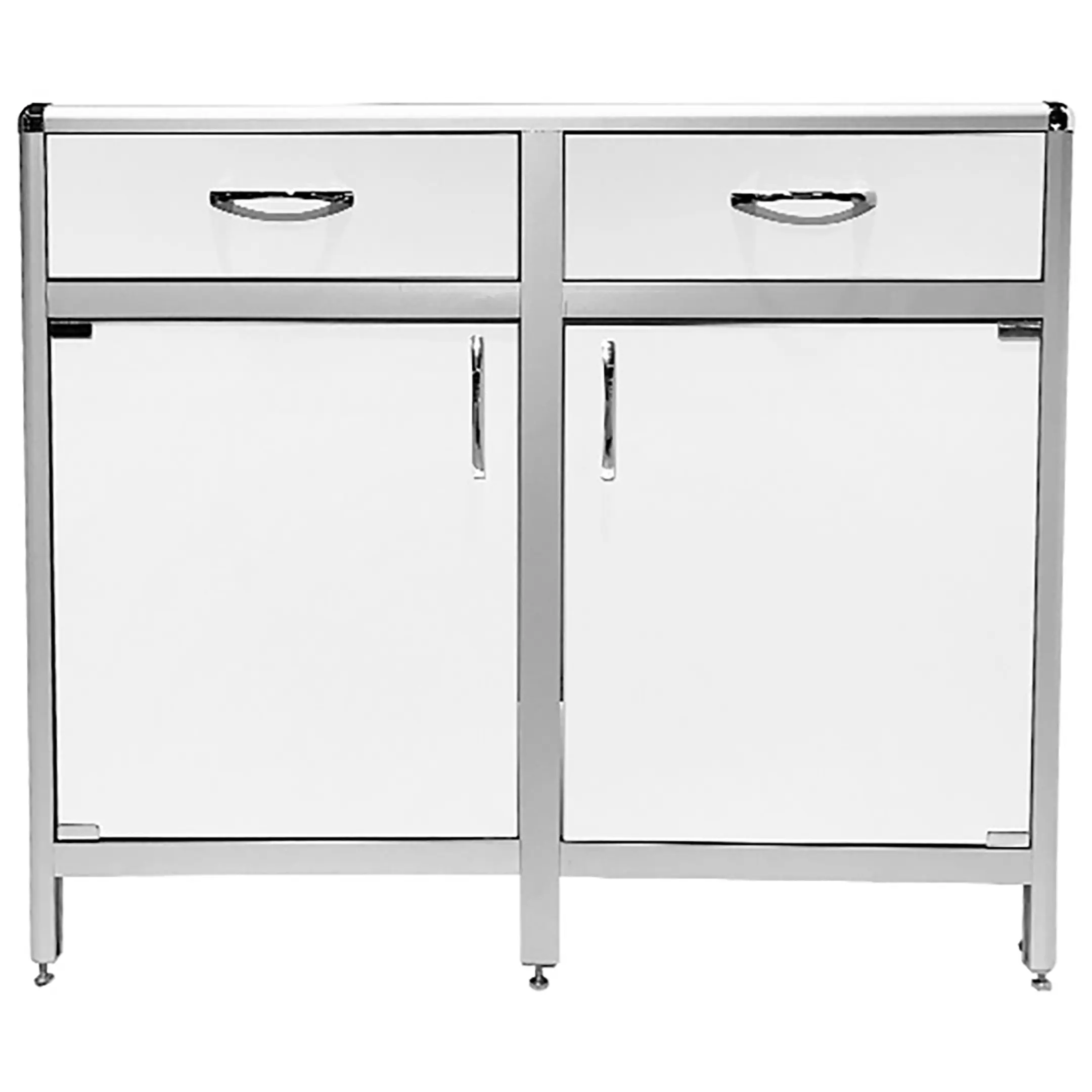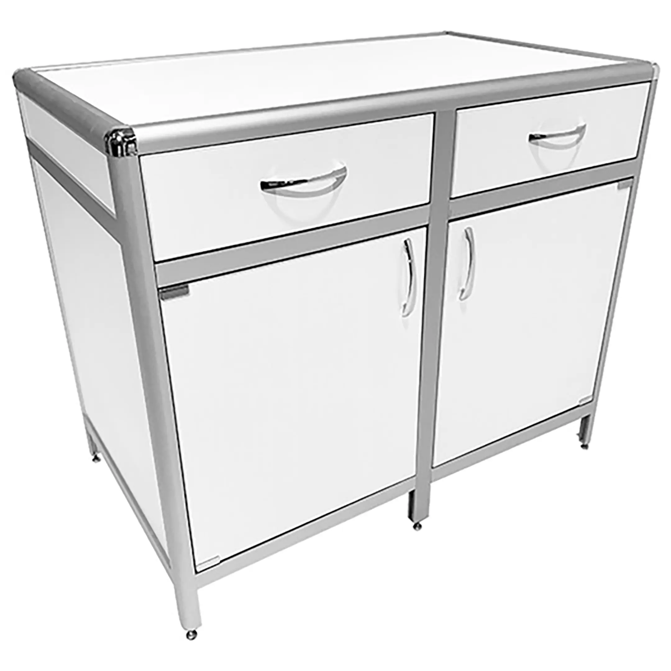 Стол-тумба лабораторная MED 12.006al (белый) — это функциональное решение для хранения лабораторного инвентаря, приборов и материалов в лабораториях и медицинских учреждениях. Модель оснащена двумя выдвижными ящиками (434х70х406 мм) и двумя тумбами с распашными дверками и полками внутри (полки 463х545 мм). Каркас выполнен из алюминиевого профиля, столешница из ЛДСП толщиной 16 мм.