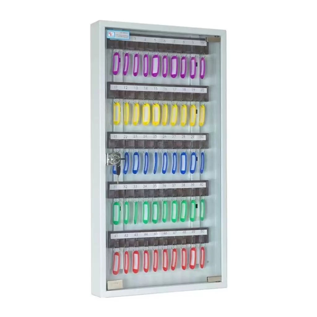 Ключница КЛ-50С со стеклянной дверцей (без брелков) — это эстетичная и практичная система для организованного хранения ключей в учреждениях и на предприятиях. Конструкция с лицевой панелью из мебельного стекла обеспечивает удобный визуальный контроль и надежную защиту для 50 комплектов ключей, предоставляя гибкость в выборе аксессуаров.