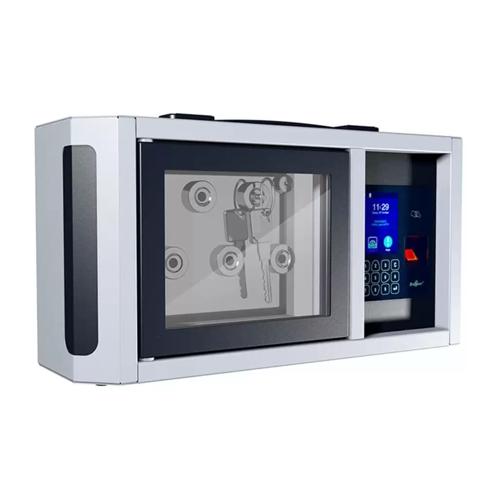 - Надежная фиксация и защита ключей — прочный корпус и электронно-управляемые слоты надежно удерживают брелоки с ключами. При отключении питания брелоки остаются заблокированными, исключая несанкционированное изъятие.