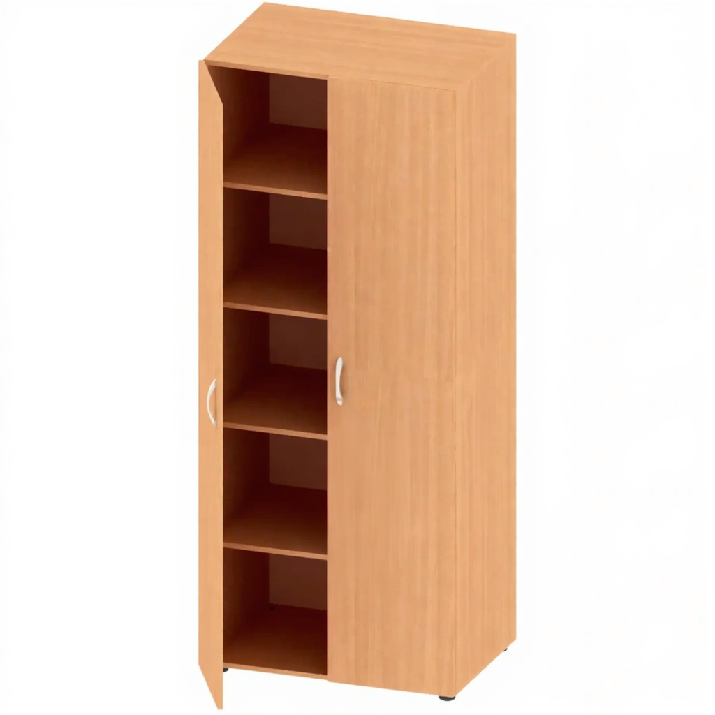 Шкаф для бумаг 1950 мм СТ-ШП-112-2 — это вместительное и функциональное решение для хранения документов, папок, бумаг и канцелярских принадлежностей в образовательных, офисных и административных учреждениях. Модель высотой 1950 мм оснащена двумя распашными дверями и пятью полками (включая дно), изготовлена из качественной ЛДСП толщиной 16 мм с регулируемыми опорами.