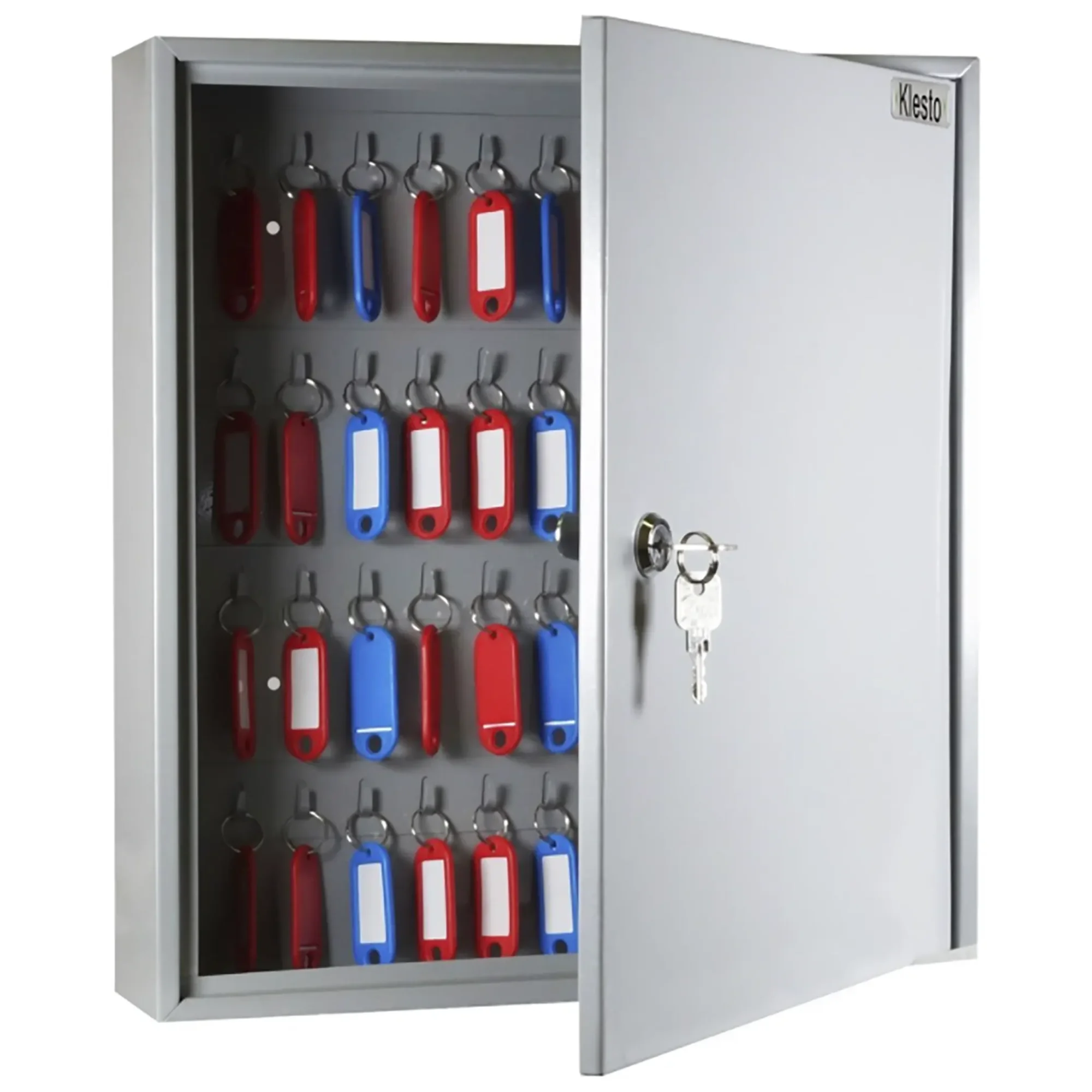 - Компактность и достаточная вместимость для типовых задач — ключница рассчитана на хранение 40 ключей, что является оптимальным решением для объектов с ограниченным количеством помещений, таких как небольшие офисы, студии, салоны, кабинеты или пункты приема клиентов. Ее размеры позволяют легко разместить шкаф на стене в удобном месте, не занимая много пространства.