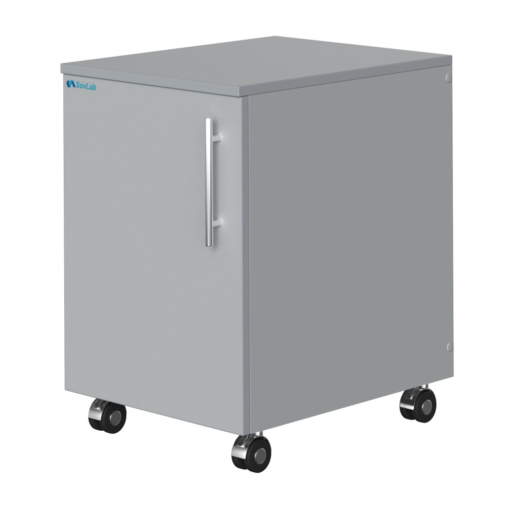- Универсальность применения — подходит для хранения лабораторного инвентаря, реактивов, документов и инструментов, может использоваться как отдельно, так и в комплекте с лабораторными столами.
