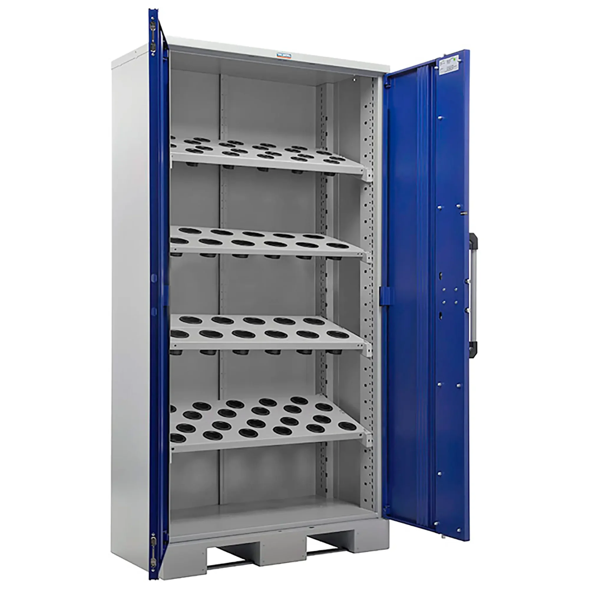 - Специализированная организация для оснастки ЧПУ — внутреннее пространство организовано с учетом габаритов и форм стандартного инструмента для станков с ЧПУ. Часто включает регулируемые полки, перфорированные панели с усиленными крючками для держателей, специальные гнезда или держатели для точного и безопасного размещения каждого элемента оснастки.