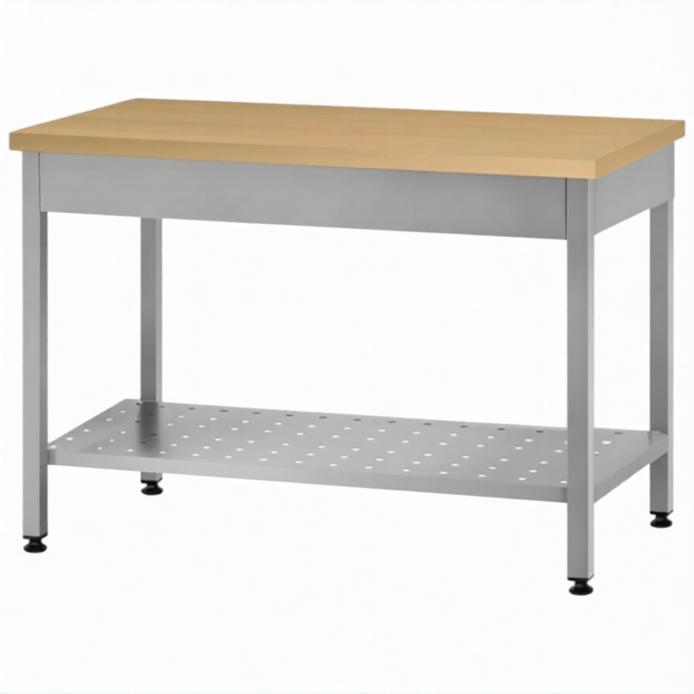 Стол кондитерский СПРп 860х1500х800 «Profi Inox», на 6-ти ногах, бук/40 (полка перфорация)