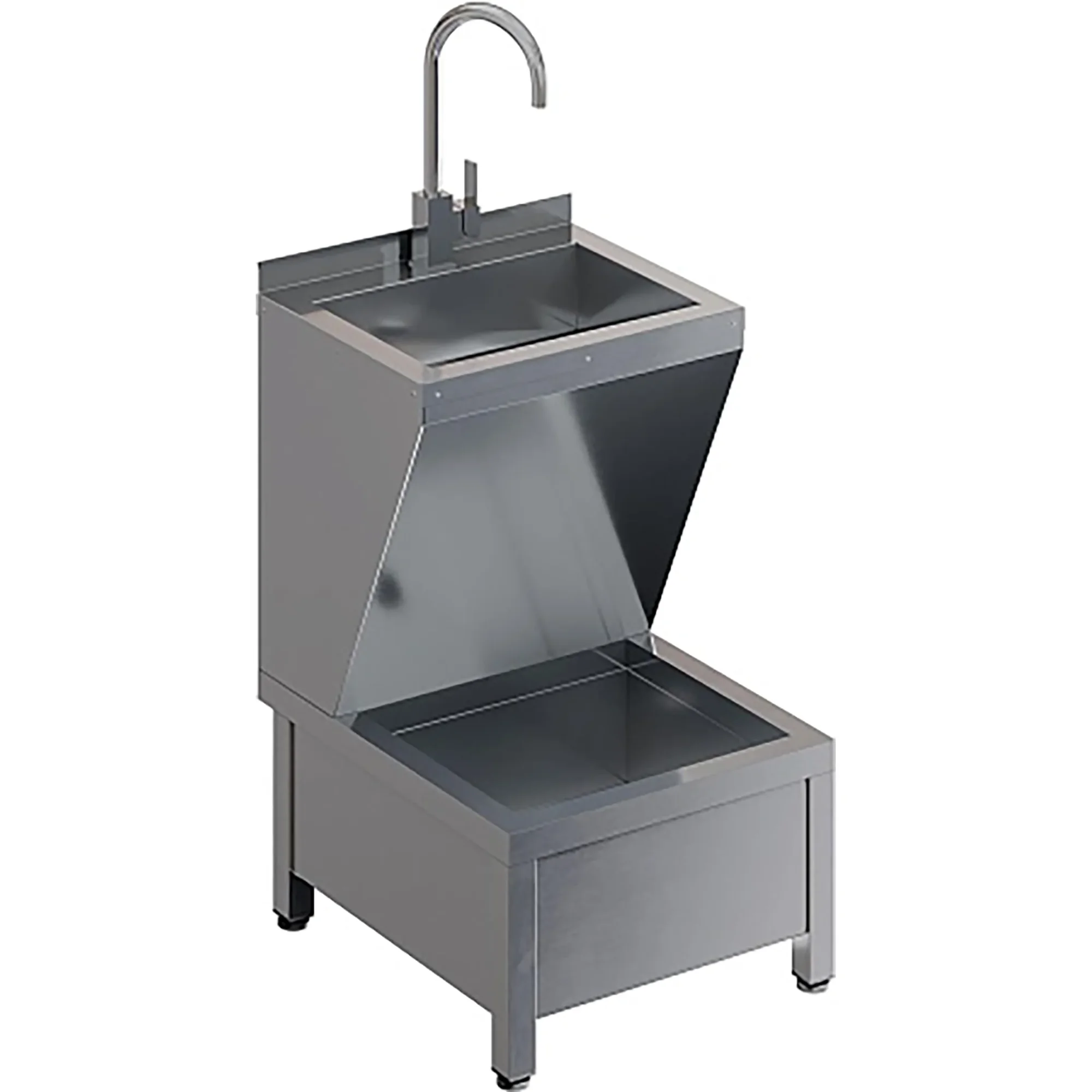 • Две сварные ёмкости из нержавеющей стали марки AISI 430, ванна нижняя 440х370х160 мм, верхняя мойка 400х350х125 мм;