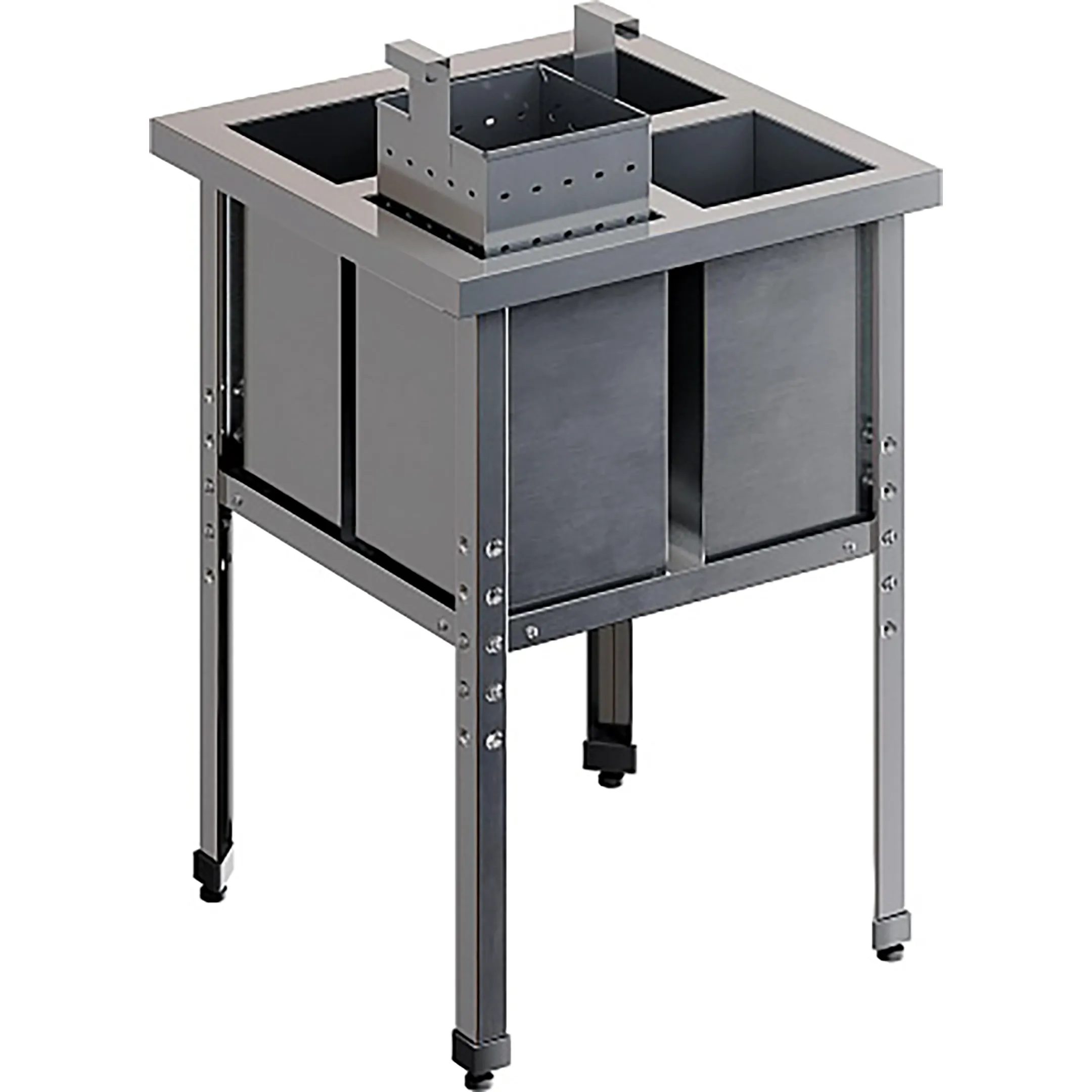 • Ножки из уголка 40х40 мм из нержавеющей стали Aisi 304 толщиной 1.5 мм с пуклевкой, что придает дополнительную жесткость конструкции.