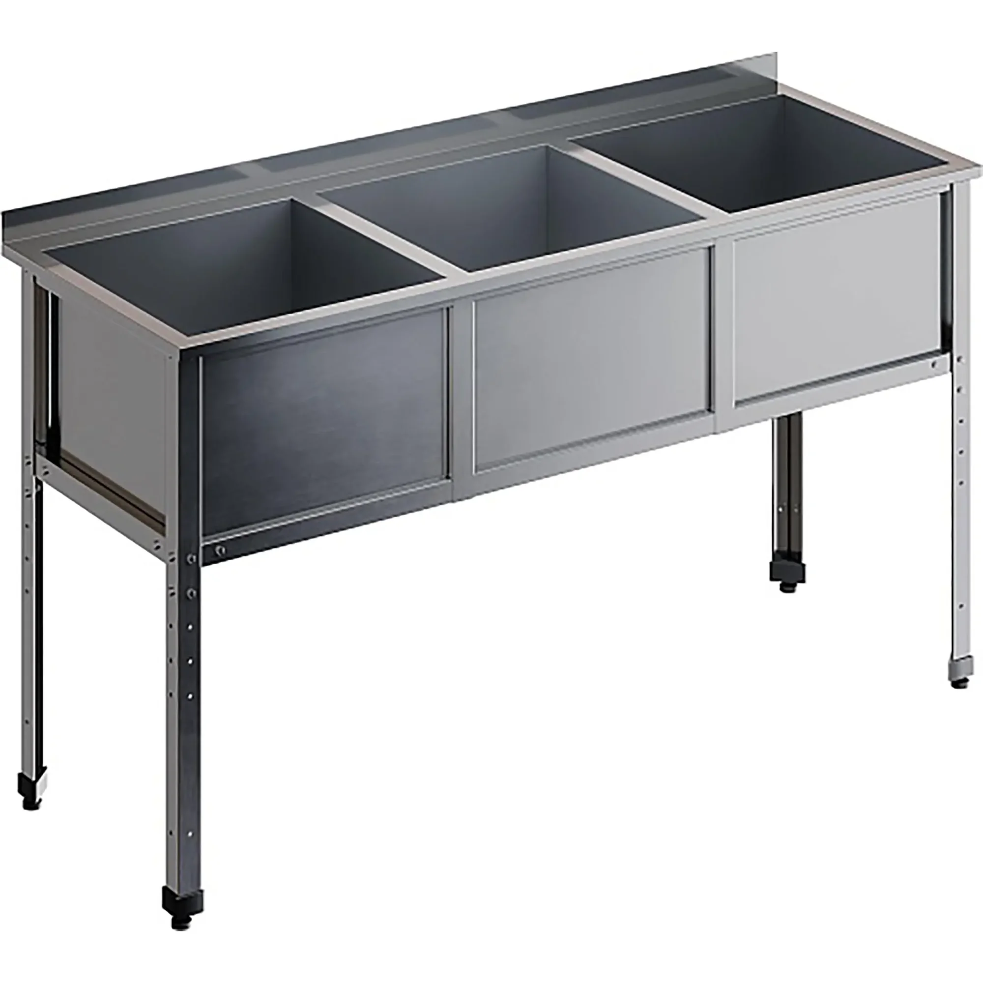 Ванна моечная трехсекционная с бортом ВМС-3/6-Б-ЭН разработана для применения в моечных отделениях предприятий общепита и торговли различного формата, пищевых производств и пищеблоков для мытья посуды, кухонного инвентаря, продуктов питания и рук персонала.