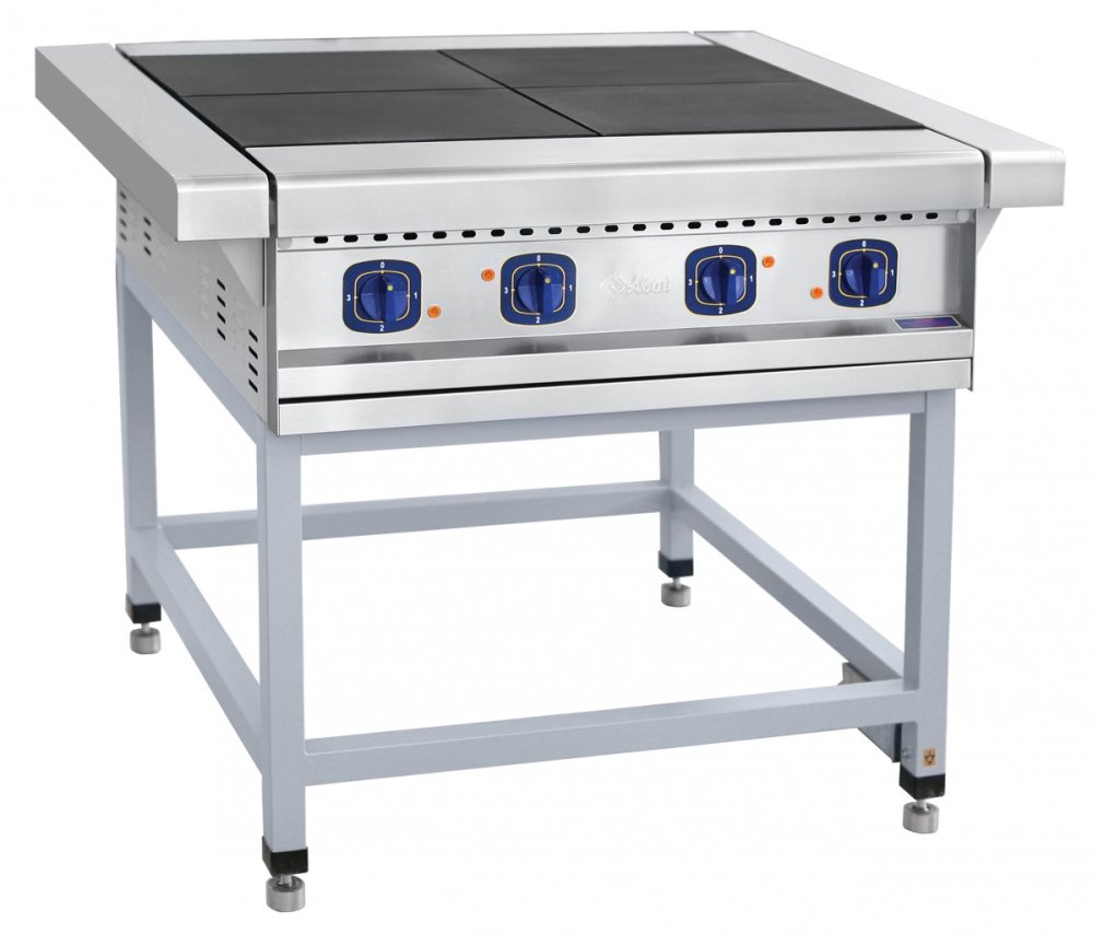 Плита электрическая четырехконфорочная без жарочного шкафа ЭП-4П на подставке предназначена для приготовления первых, вторых, третьих блюд в наплитной посуде, а также для жарки полуфабрикатов из мяса, рыбы, овощей и выпечки мелко штучных кулинарных изделий.