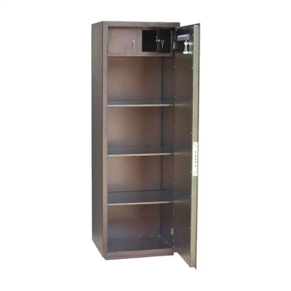 • Сейф односекционный, оснащен тремя съемными полками и двумя трейзерами.