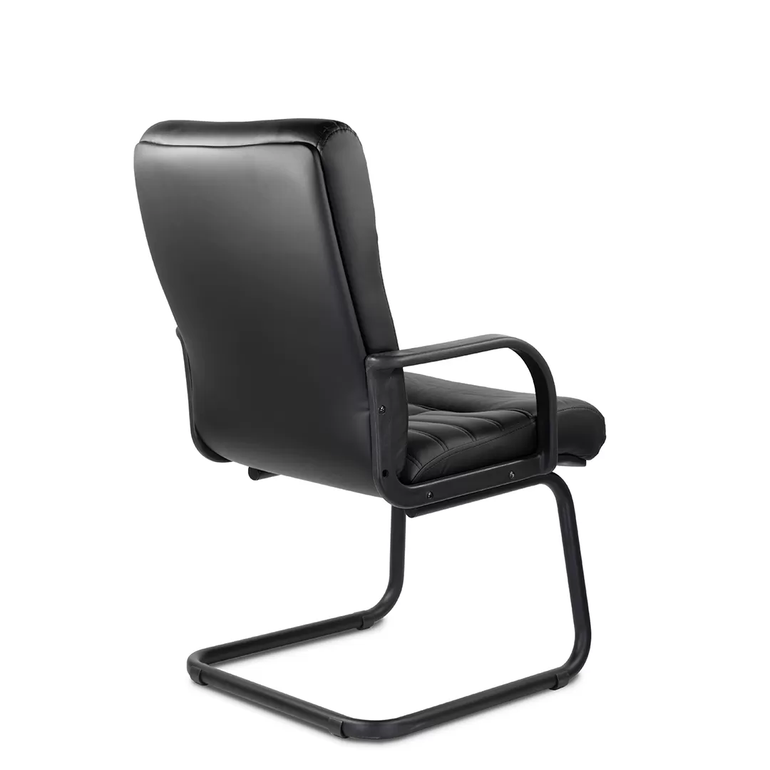 Массивное кресло с горизонтальными прострочками по ширине всей спинки и углублением. Пластиковые подлокотники обеспечат комфортную посадку на весь рабочий день. Модель отлично подойдет для приемной, переговорной в строгом стиле.