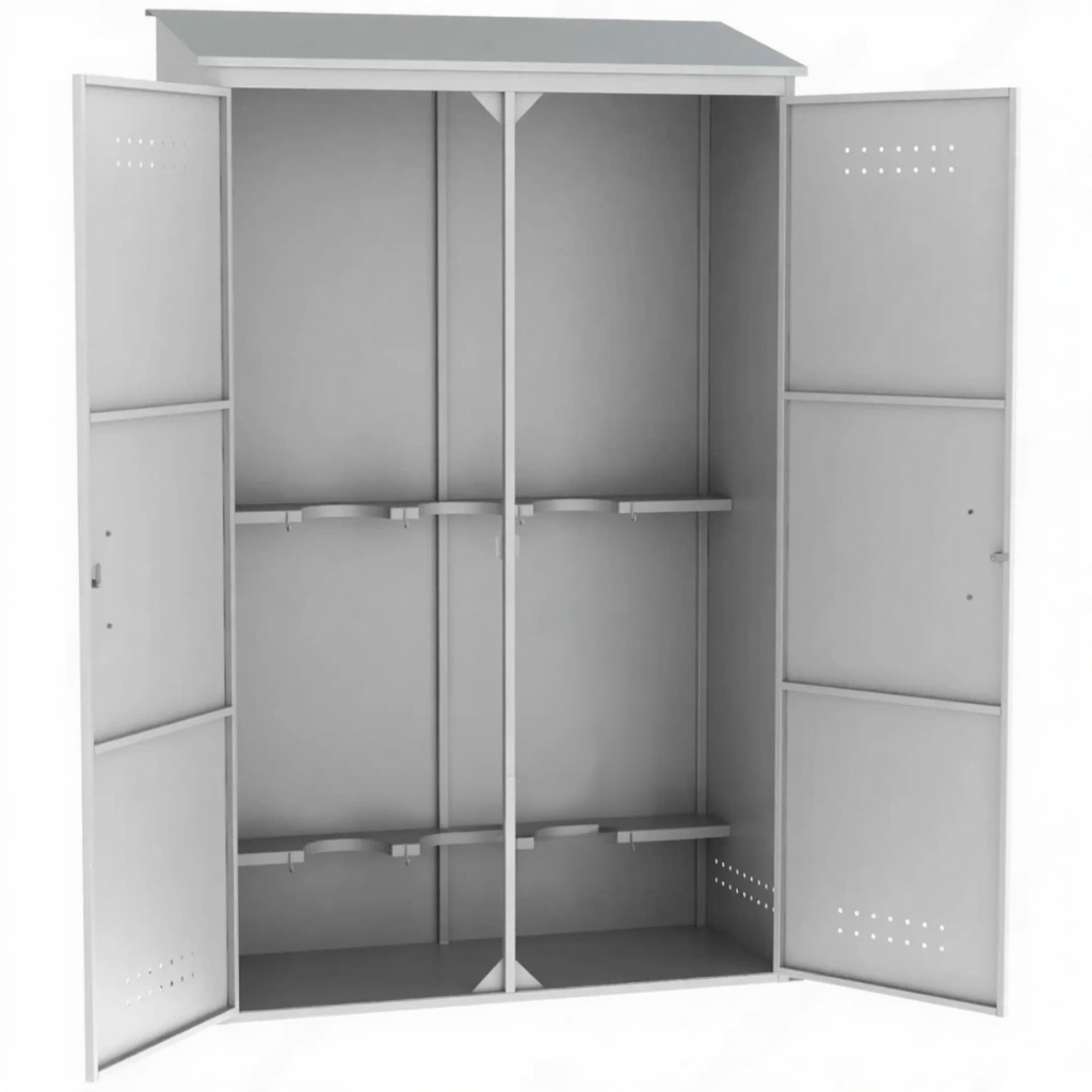 - Идеальная вместимость для основных задач — шкаф рассчитан на хранение трех стандартных газовых баллонов, что является наиболее распространенной потребностью для множества небольших операций: сварочный пост (топливный газ + кислород + резерв), лабораторная установка или сервисное обслуживание. Он решает вопрос безопасности, не занимая лишнего места.