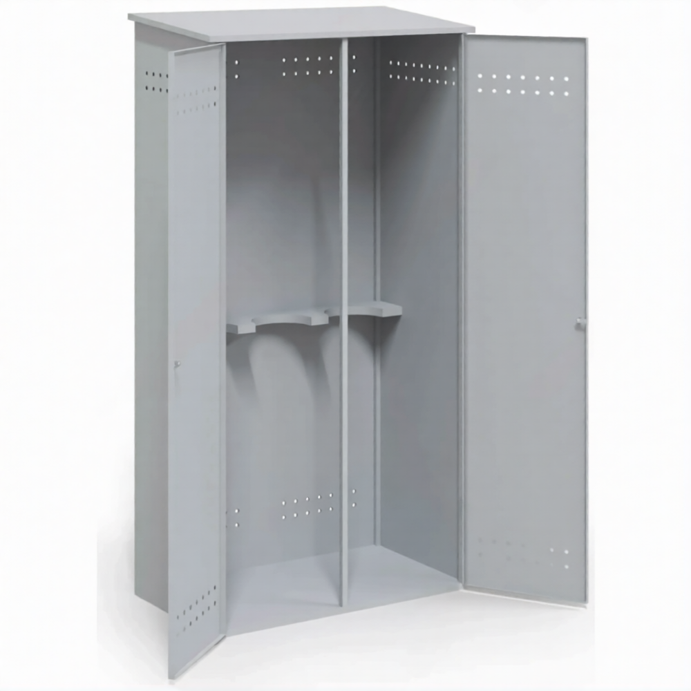 - Гарантия пожарной безопасности в соответствии с нормативами — прочный металлический корпус служит надежным барьером, изолирующим баллоны от источников открытого огня, искр и теплового излучения. Обязательная система естественной вентиляции обеспечивает постоянный воздухообмен, предотвращая накопление газа и образование взрывоопасной концентрации в случае утечки, что является прямым требованием правил противопожарного режима (ППР в РФ).
