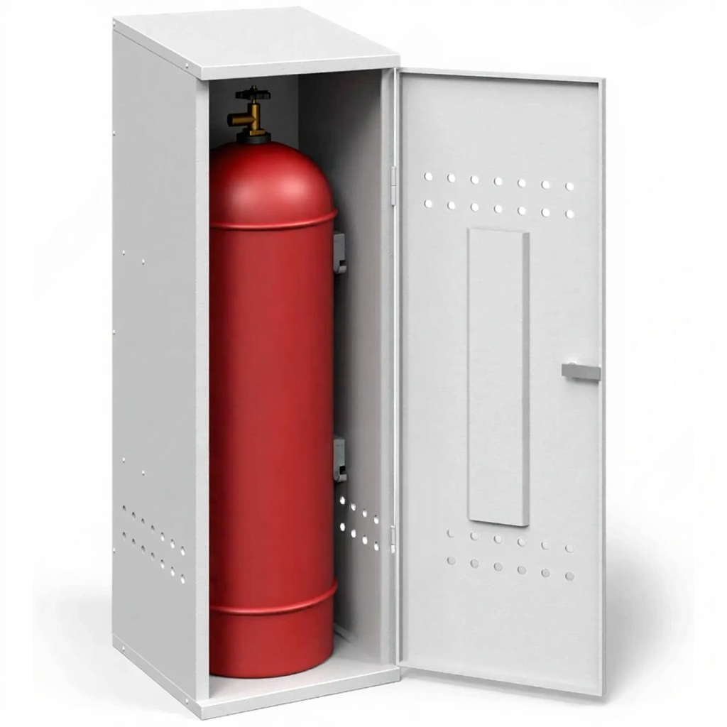 - Соблюдение базовых требований пожарной безопасности — шкаф оснащен всеми необходимыми элементами для безопасного хранения: запирающейся дверцей с замком и вентиляционными отверстиями (перфорацией) в нижней и верхней части корпуса. Это обеспечивает отвод газа в случае утечки и предотвращает образование взрывоопасной концентрации внутри шкафа.