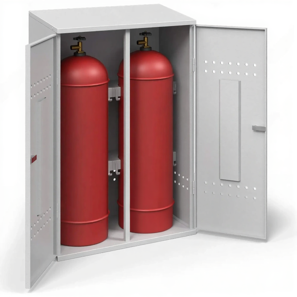 - Прочность и надежность конструкции — использование стали 1,2 мм и болтовых соединений обеспечивает достаточную жесткость и устойчивость собранного шкафа для безопасного размещения двух тяжелых баллонов. Конструкция рассчитана на длительную эксплуатацию.