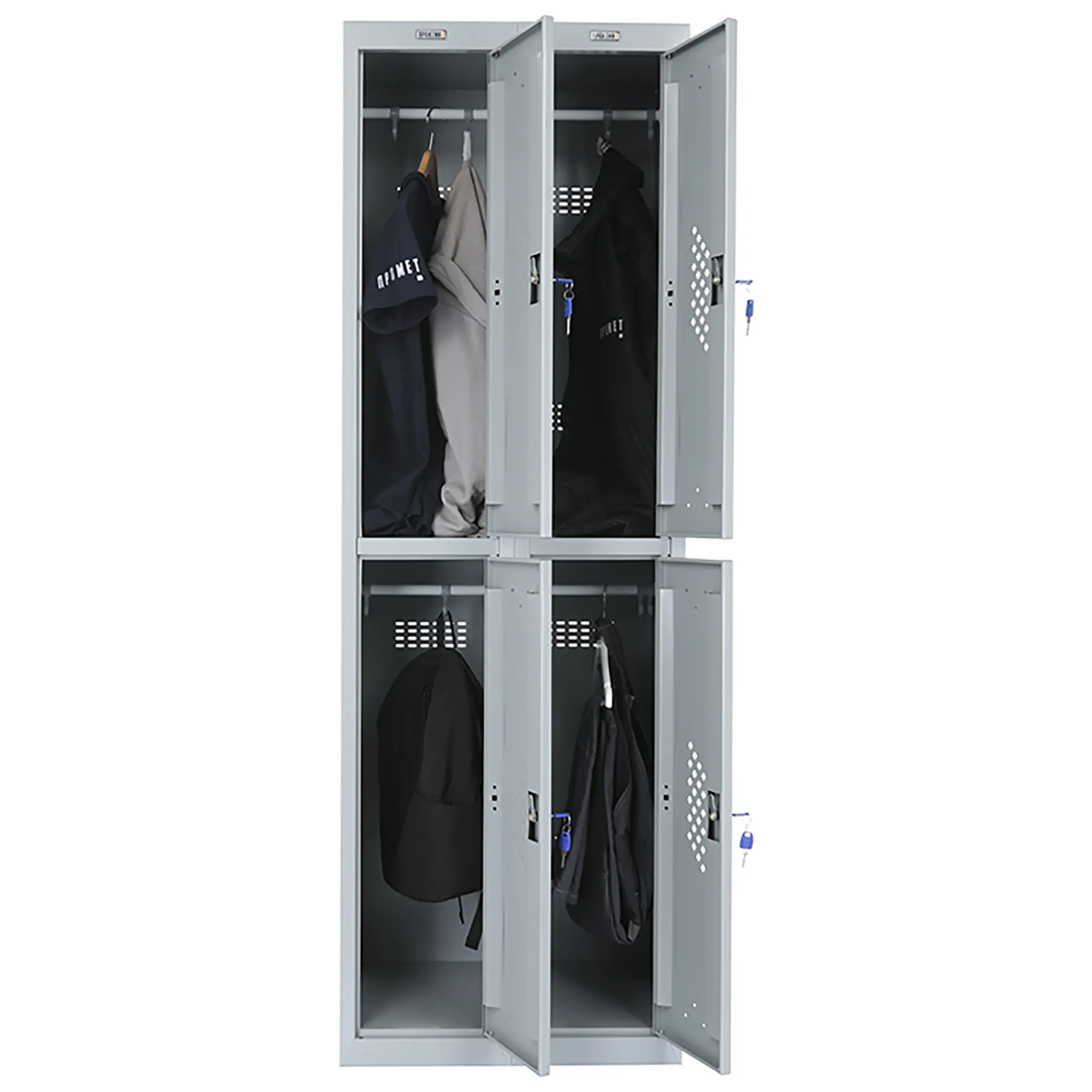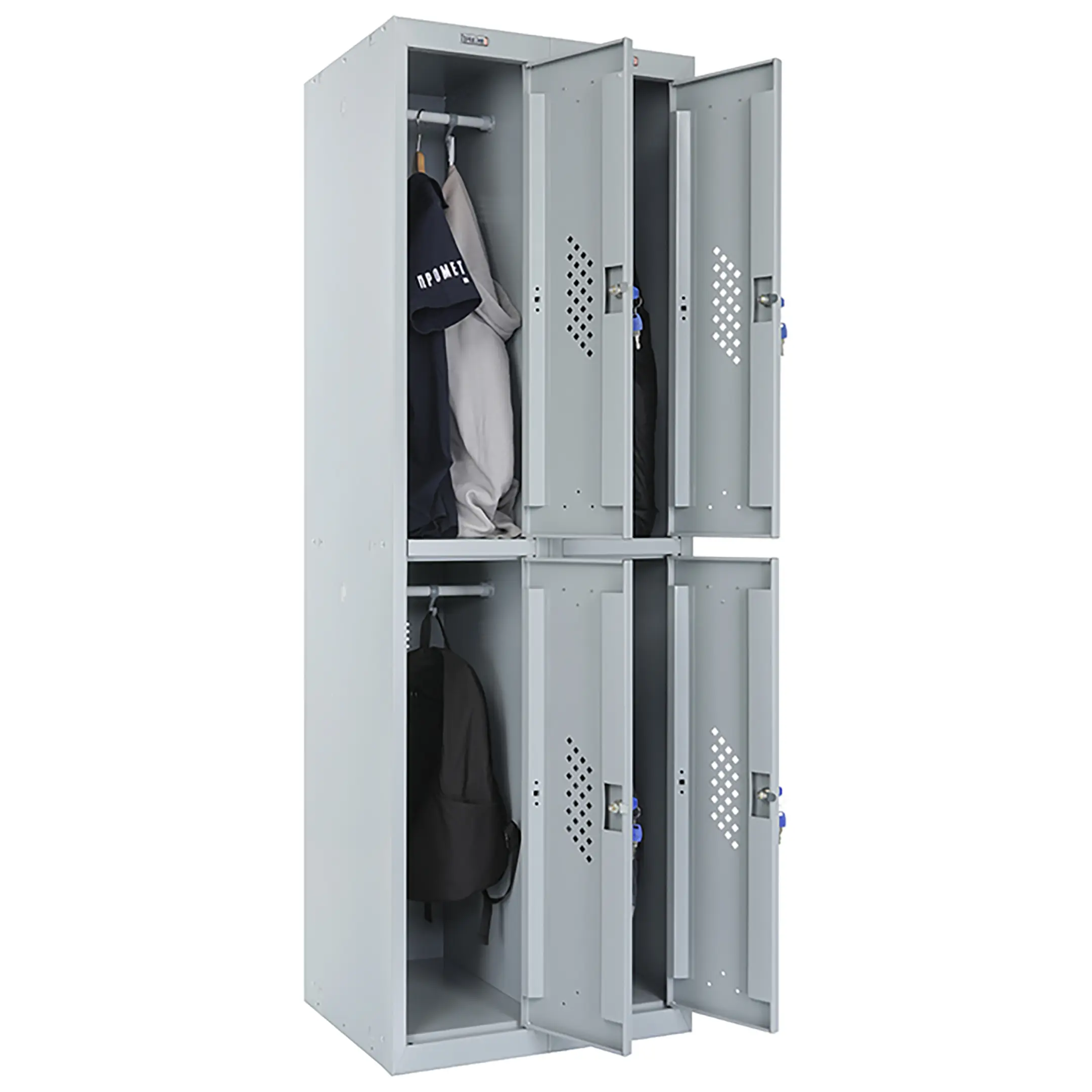 - опции (под заказ, уточняйте у менеджера): замком PL*** (вместо ключевого замка устанавливается бесключевой замок Euro-locks A129 с устройством под навесной замок), кодовый механический или кодовый электронный (по запросу), для камер хранения или фитнес центров; полка под обувь, подставка или скамья-подставка под шкаф, наклонная крыша