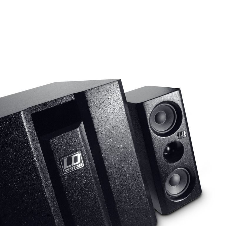 В сабвуфер встроен высокопроизводительный усилитель класса AB. Мультимедийная система LD DAVE 8 XS имеет линейные входы на разъемах XLR и RCA и оснащена всеми стандартными системами защиты. Встроенный лимитер защищает систему от перегрузки и обеспечивает длительный срок службы. На боковой стороне сабвуфера, в дополнение к выключателю ON/OFF и переключателю реверса фазы (180°), имеется отдельный регулятор громкости, который позволяет найти идеальный баланс ярких высоких частот и мощного баса. Сателлиты оснащены 16-мм фланцем и поэтому совместимы со стойками из комплекта DAVE 8 SET 2.